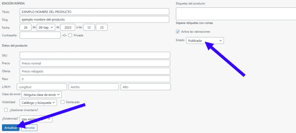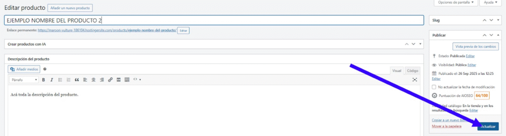 - Hacé clic en Actualizar para guardar cambios.