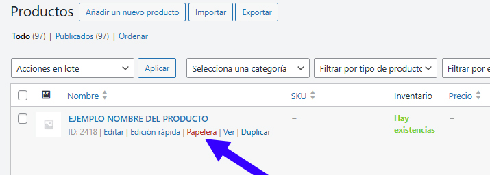 - Enviar a la papelera (desaparece de la tienda pero se puede restaurar).