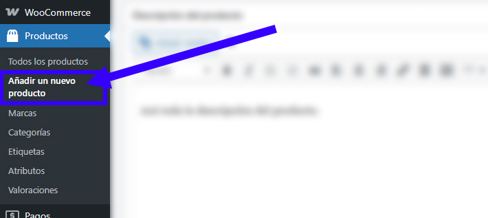 - En el menú izquierdo, hacé clic en Productos → Añadir un nuevo nuevo.