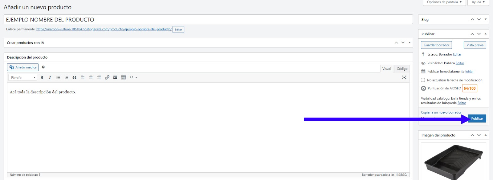 - Publicá el nuevo producto.